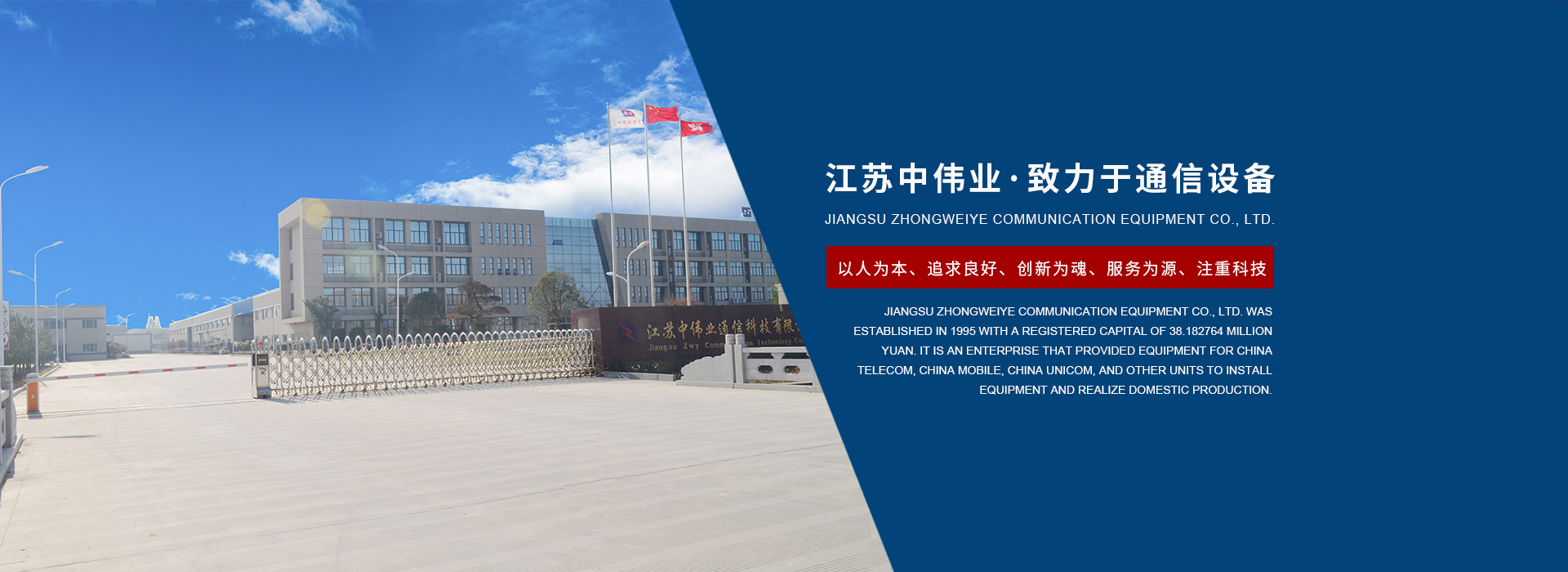 江蘇中偉業通訊設備有限公司創建于1995年,注冊資本為3818.2764萬元,是我國較早為華為、中國電信、中國移動、中國聯通等單位供應機站安裝材料的公司,并與其建立了長久穩定的合作關系。